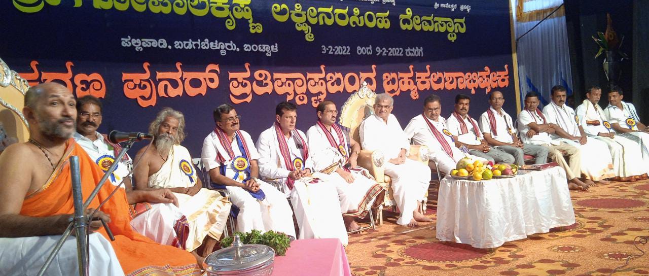 ಬಂಟ್ವಾಳ: ತಾಲೂಕಿನ ಬಡಗಬೆಳ್ಳೂರು ಗ್ರಾಮದ ಪಲ್ಲಿಪಾಡಿ ಶ್ರೀ ಗೋಪಾಲಕೃಷ್ಣ ಲಕ್ಷ್ಮೀನರಸಿಂಹ ದೇವಸ್ಥಾನದಲ್ಲಿ ಬ್ರಹ್ಮಕಲಶೋತ್ಸವ ಪ್ರಯುಕ್ತ ಬುಧವಾರ ಸಂಜೆ ಧಾರ್ಮಿಕ ಸಭೆ ನಡೆಯಿತು.