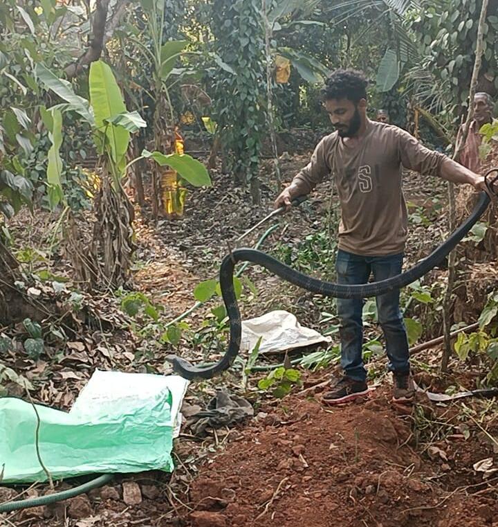 ಸ್ಥಳೀಯ ನಿವಾಸಿ ಕುಮಾರ್ ಎಂಬುವರ ಮನೆ ಬಳಿ ಕಾಣಿಸಿಕೊಂಡ ಕಾಳಿಂಗ ಸರ್ಪ ಮನೆಯವರಲ್ಲಿ ಭಯ ಹುಟ್ಟಿಸಿತ್ತು. ಕೂಡಲೇ ಸ್ಥಳಕ್ಕೆ ಆಗಮಿಸಿದ ಅಲ್ಬಾಡಿಯ ಉರಗಪ್ರೇಮಿ ನಾಗರಾಜ್.ಎಸ್ ಇವರು ಕಾಳಿಂಗ ಸರ್ಪವನ್ನು ಹಿಡಿದು ಸೋಮೇಶ್ವರ ಅಭಯಾರಣ್ಯಕ್ಕೆ ಸುರಕ್ಷಿತವಾಗಿ ಬಿಟ್ಟರು .