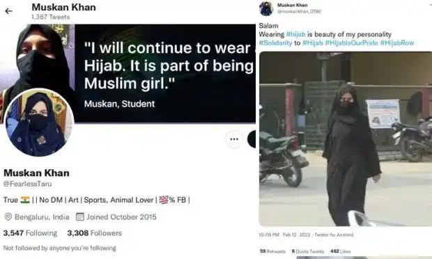 ಮುಸ್ಕಾನ್ ಹೆಸರಿನಲ್ಲಿರುವ ಮತ್ತೊಂದು ಟ್ವಿಟರ್ ಖಾತೆ 2017ರ ಡಿಸೆಂಬರ್ನಲ್ಲಿ ಪ್ರಾರಂಭವಾಗಿದ್ದು, ಈ ಖಾತೆಗೆ 37,000 ಫಾಲೋವರ್ಗಳಿದ್ದಾರೆ. ಕರ್ನಾಟಕದಲ್ಲಿ ಹಿಬಾಬ್ ವಿವಾದ ಪ್ರಾರಂಭವಾಗುತ್ತಿದ್ದಂತೆ ಆ ಖಾತೆಯಲ್ಲಿದ್ದ ಟ್ವೀಟ್ಗಳನ್ನು ಡಿಲೀಟ್ ಮಾಡಿರುವುದು ಇನ್ನಷ್ಟು ಅನುಮಾನ ಸೃಷ್ಟಿಸಿದೆ.