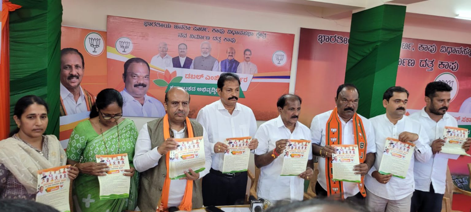 ಉಡುಪಿ: ಭಾರತೀಯ ಜನತಾ ಪಾರ್ಟಿ ಕಾಪು ವಿಧಾನಸಭಾ ಕ್ಷೇತದ ಚುನಾವಣಾ ಪ್ರಣಾಳಿಕೆ ಬಿಡುಗಡೆ ಕಾರ್ಯಕ್ರಮ ಭಾರತೀಯ ಜನತಾ ಪಾರ್ಟಿಯ ಚುನಾವಣಾ ಕಾರ್ಯಾಲಯ ಕಾಪು ಇಲ್ಲಿ ನೆರವೇರಿತು.